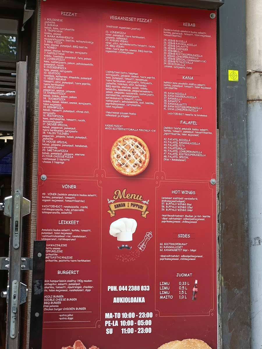 Customers rave about the tasty chicken kebab, complemented by a unique curry-based sauce that has left a lasting impression. For pizza lovers, AnnanPippuri does not disappoint; patrons highlight the excellent standards and affordability of the pizzas, with prices starting at just €7.90. Many diners appreciate the vibrant atmosphere and the busy takeout scene, thanks to delivery services like Wolt.